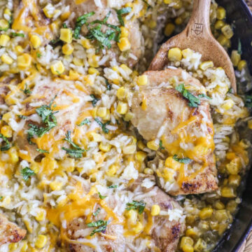 Salsa Verde Chicken and Rice Skillet- Easy Family Recipes