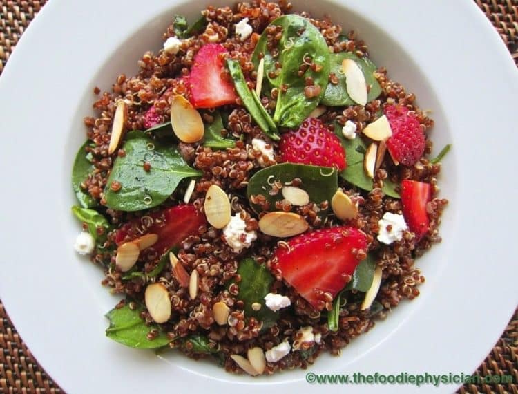 Quinoa Salad with Spinach, Strawberries and Goat Cheese