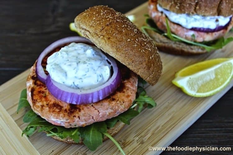 Salmon Burgers with Dill Yogurt Sauce