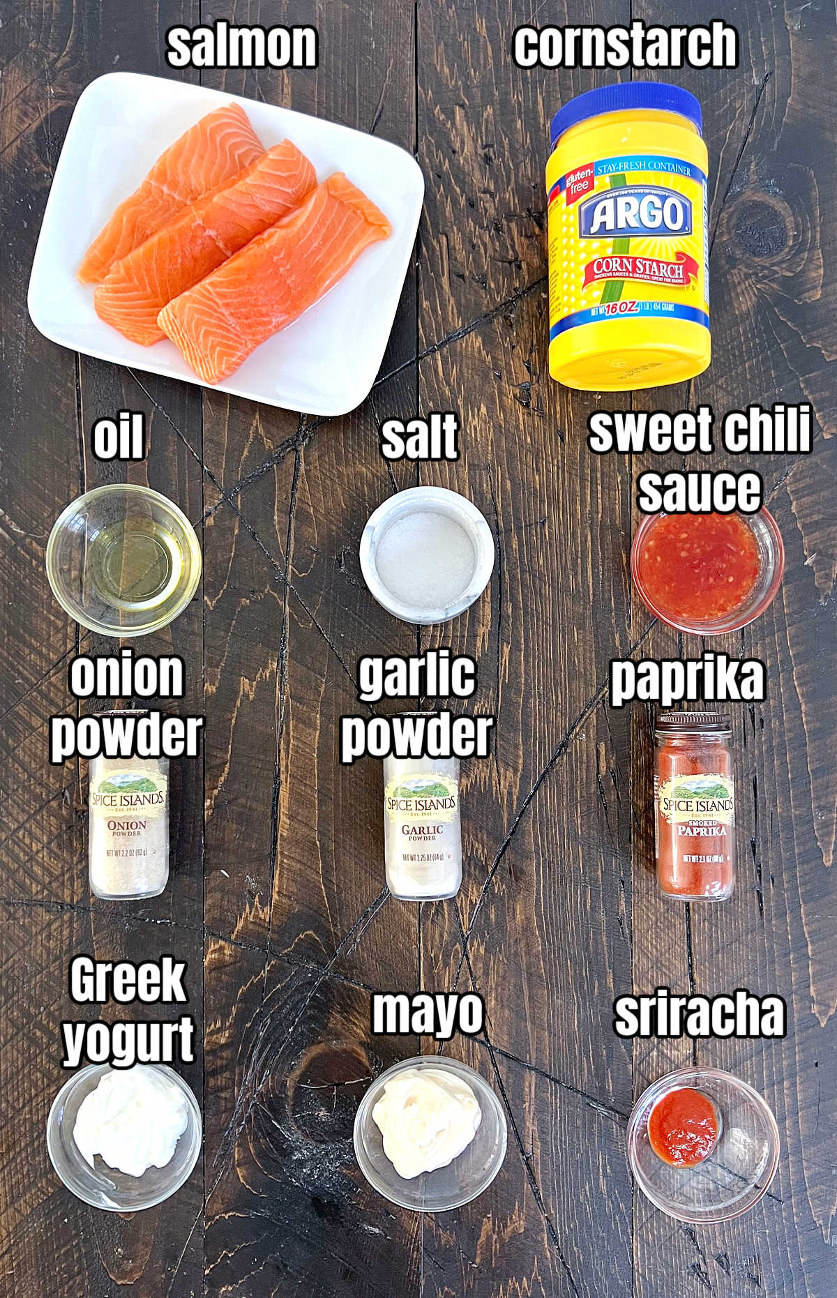 - Cornstarch- I include a little cornstarch to help achieve a crispy texture on the salmon.