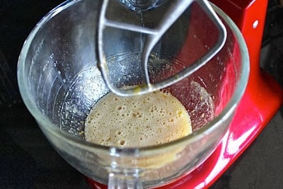 - Place the eggs, sugars, vanilla and orange zest in the bowl of a stand mixer and beat with the paddle attachment until well incorporated.