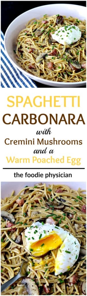 My Spaghetti Carbonara with a Warm Poached Egg is a recipe that I developed many years ago when I first got into cooking. I was a resident doctor in New York City working long hours and living on a tight budget. I loved this dish because you can make it with inexpensive ingredients, it comes together pretty quickly, and it's very satisfying.