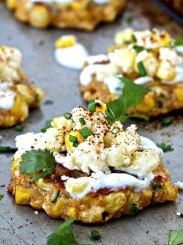 Elote is one of my favorite ways to enjoy corn. I make a lighter version of traditional Mexican street corn in my air fryer. I also make these delicious Mexican street corn fritters.