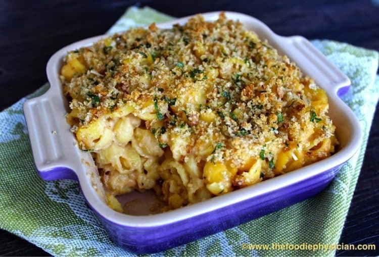 Macaroni and cheese has been one of my favorite dishes since childhood and I am always looking for new ways to make it. My latest version, Cauliflower Mac and Cheese, is a healthy dish that your whole family will love and believe it or not, the sauce does not contain any butter or cream. Rather, it's made with skim milk and cauliflower. Hot from the oven, topped with crispy, golden breadcrumbs, this dish is a great way to get kids (and adults) to eat their vegetables!