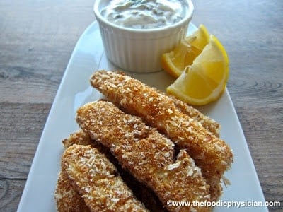 Healthy Fish Sticks with Lemon Dill Sauce