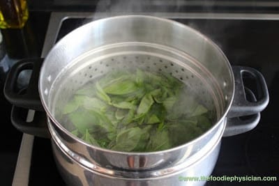 - First, blanch the basil in boiling water and then shock it in cold water to stop the cooking and lock in the vibrant color.