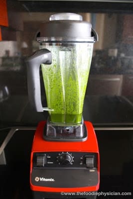 - Drain the leaves and pat them dry with paper towels to remove as much water as possible. Place the basil in a blender along with the oil. Blend on high speed until it is pureed.
