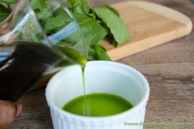 The technique for making basil oil is straightforward- you just need a couple of ingredients, a blender and a strainer (optional).