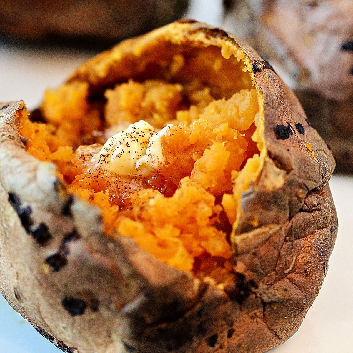 Let potatoes cool slightly. Then cut them open and serve with desired toppings like butter, cinnamon and/or maple syrup.