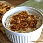 Mix the yogurt, sour cream, garlic powder, Worcestershire sauce, ½ teaspoon salt and pepper together in a bowl. Set aside a small amount of caramelized onions for garnish and stir the remaining onions into the yogurt mixture until distributed throughout. Garnish with reserved onions and serve. For maximum flavor, make the dip a few hours before serving.