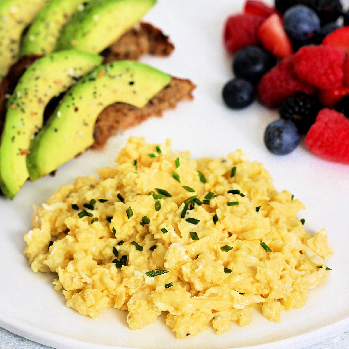 Transfer eggs to a plate and garnish with fresh herbs, if desired. Serve scrambled eggs with your favorite side dishes.