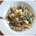 When the barley is cooked, lower the heat and stir in the mushrooms, spinach, pecorino, Neufchâtel cheese and remaining teaspoon of thyme. Season the mixture with salt and pepper to taste. Garnish with an extra sprinkle of pecorino if desired. Serve immediately.