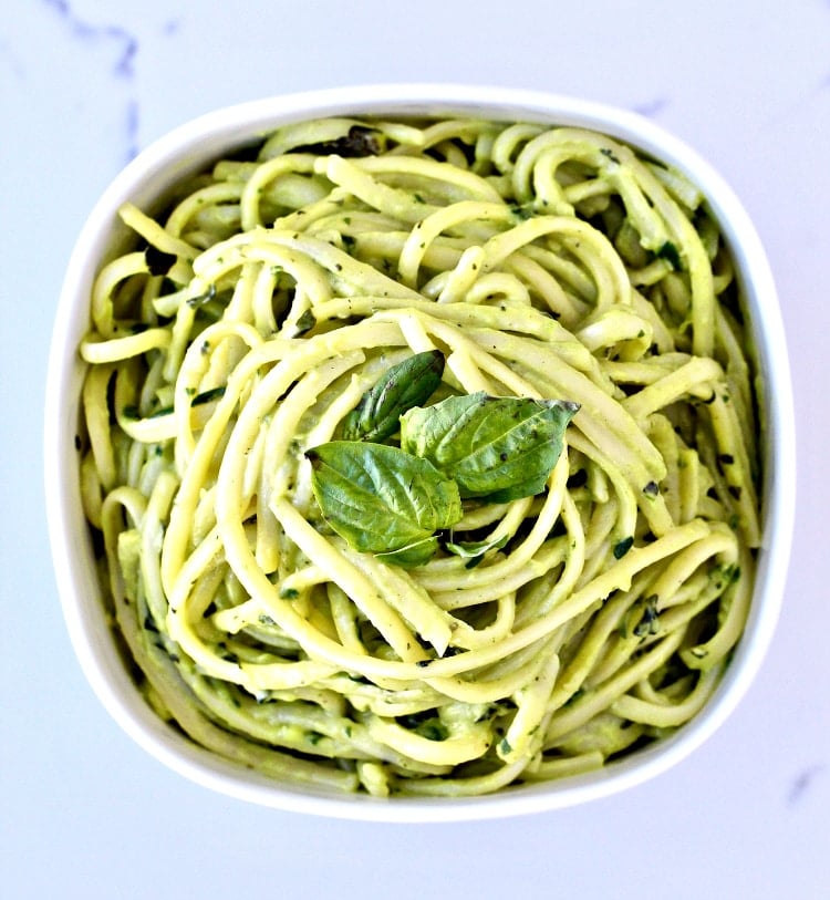 Avocado adds irresistible creaminess to this no-cook green pesto sauce. Toss it with linguini for a hearty and nutritious meal.