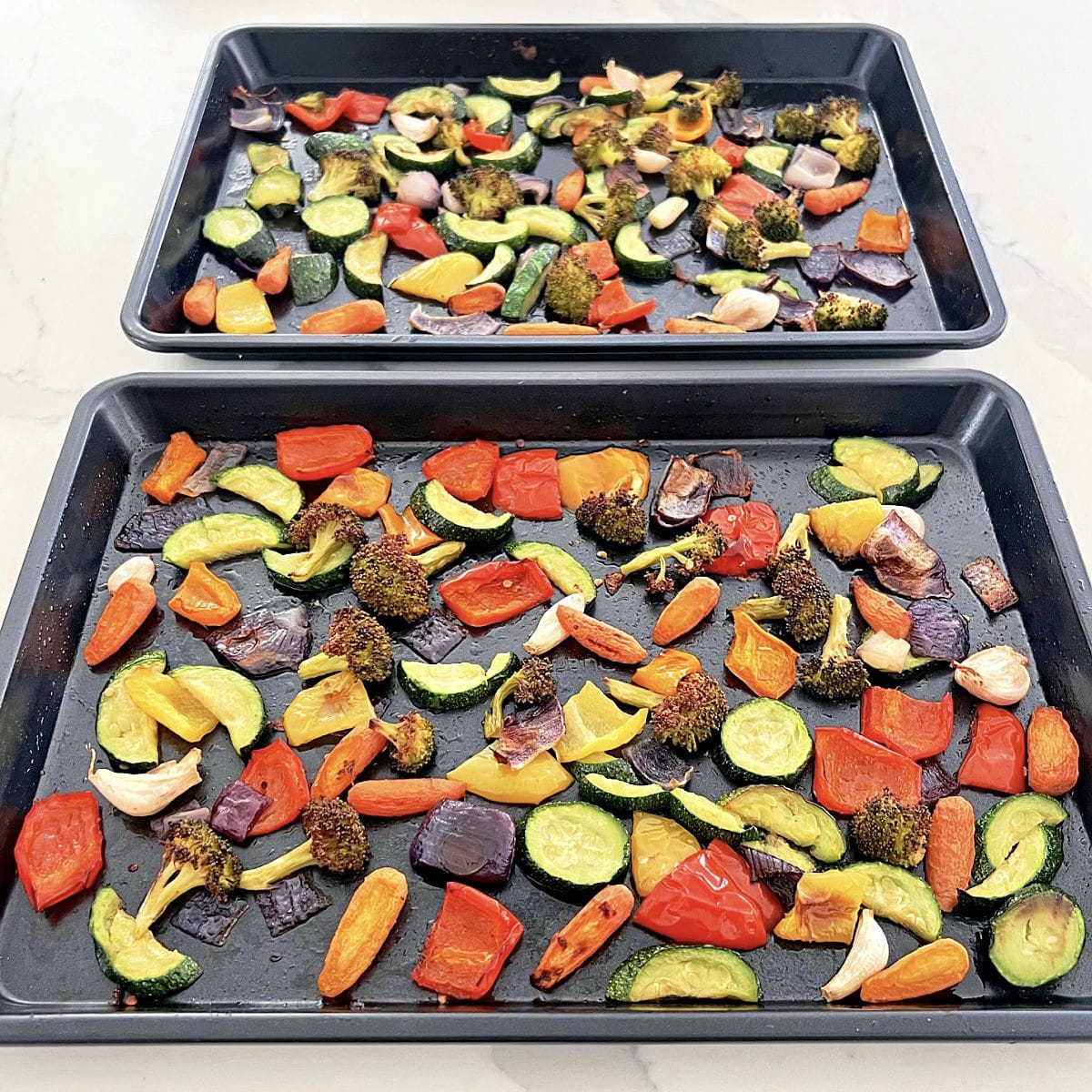 - Spread the vegetables out in a single layer on the sheet pans to maximize the caramelization. Don’t overcrowd the pans or they will steam instead of brown.